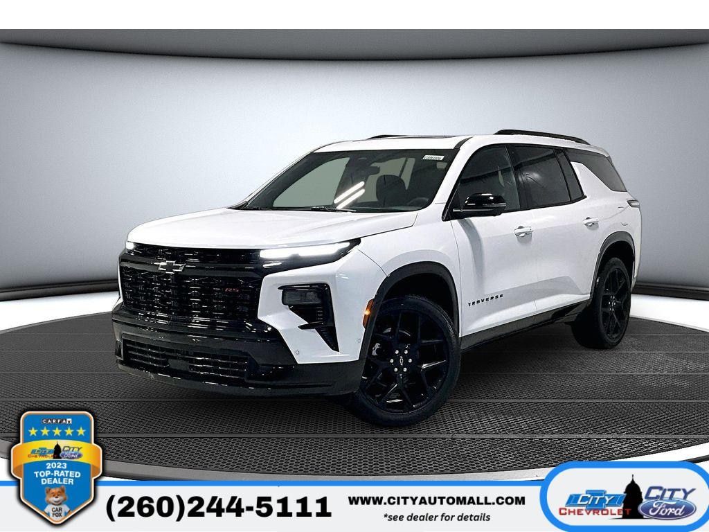 2026 Chevrolet Traverse AWD RS ready in Columbia City, IN combines sporty style, confident all-wheel-drive capability, and efficient performance from its 4-cylinder 2.5L gasoline engine. This midsize SUV delivers responsive handling and the versatility families want, with room for passengers and cargo plus advanced tech for every drive. Inside, premium leather seats provide comfort for long trips while the heated steering wheel keeps you cozy in cold Indiana mornings. Built-in navigation guides you smoothly to appointments, and the back-up camera simplifies parking and tight maneuvers. Seamless hands-free Bluetooth keeps calls and audio connected without taking your focus off the road. This Chevrolet Traverse RS stands out with athletic RS styling, generous interior space, and modern convenience features that enhance everyday driving. Whether commuting, running weekend errands, or heading out of town, the AWD system adds traction and confidence in variable weather. Located in Columbia City, IN, this 2026 Chevrolet Traverse AWD RS is competitively priced and advertised as the best price available excellent value for the feature set and condition. Schedule a test drive today to experience the blend of performance, comfort, and technology this SUV offers. Don't miss a chance to own a well-equipped Chevrolet Traverse RS at an unbeatable price.