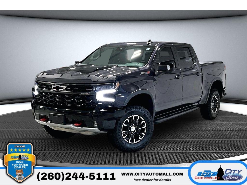 2024 Chevrolet Silverado 1500 ZR2 6.2L V8, 4WD, 6,977 miles. Located in Columbia City, IN, this rugged performance pickup combines premium comfort and serious off-road capability at the best price in the area. Powered by a muscular 6.2L V8 gasoline engine and equipped with four-wheel drive, the ZR2 delivers confident towing, responsive acceleration, and trail-ready capability when you need it most. Inside, enjoy refined features including a heated steering wheel and Bose premium audio for a comfortable, connected drive. Safety-focused technology such as lane departure warning and a back-up camera provide added confidence on busy roads and tight parking situations. The factory Off-Road Package enhances ground clearance, suspension tuning, and underbody protection to tackle rough terrain without sacrificing on-road refinement. This Chevrolet Silverado stands out with exceptionally low mileage for its model year, making it a smart value for buyers seeking near-new condition and long-term reliability. Competitive pricing ensures you're getting the best deal in Columbia City without compromising equipment or quality. Whether you need a daily driver with upscale amenities or a capable off-road companion, this 2024 Chevrolet Silverado 1500 ZR2 is ready to perform. Contact us to schedule a test drive and see why this low-mileage ZR2 is the smart choice for power, comfort, and capability.