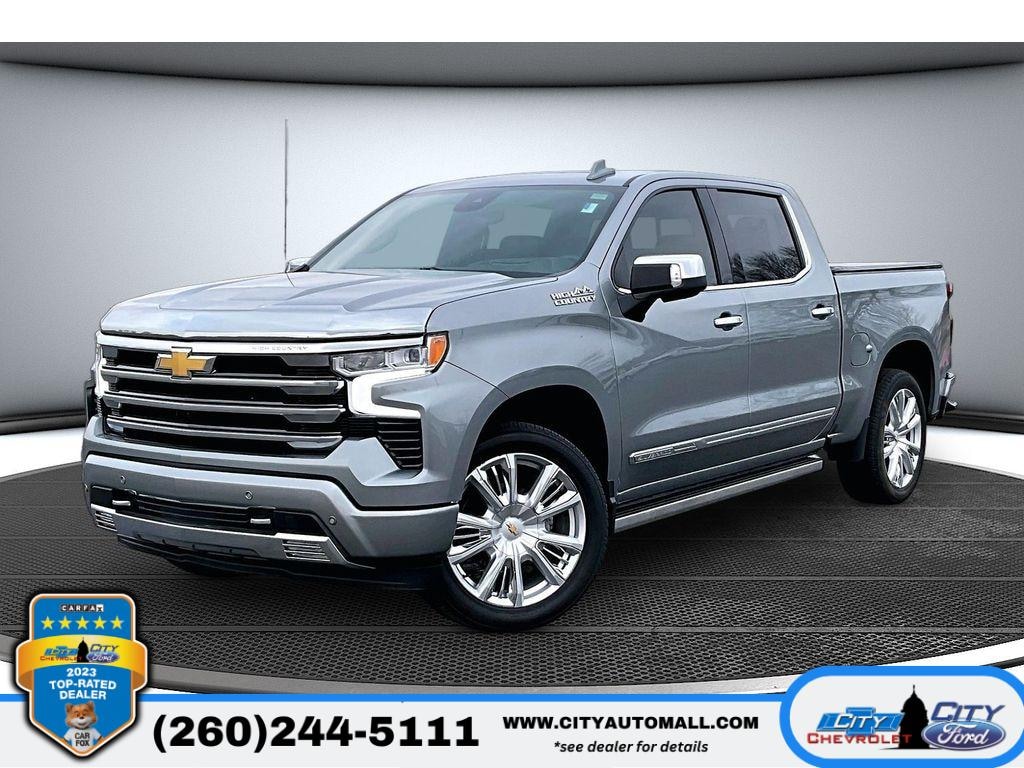 Experience premium capability with this 2024 Chevrolet Silverado 1500 High Country 4WD, located in Columbia City, IN. Powered by a robust 5.3L V8 gasoline engine, this High Country pairs strong towing and confident highway performance with refined interior appointments and advanced safety technology. This Chevrolet Silverado stands out with Adaptive Cruise Control and Lane Keep Assist for relaxed, controlled driving on long trips and busy roads. This truck is a CARFAX 1-Owner vehicle with a CARFAX Clean Report, reflecting responsible ownership and documented service history. Enjoy comfort-focused features like a Heated Steering Wheel for chilly mornings, premium leather seating, and an intuitive infotainment system that keeps connectivity and entertainment at your fingertips. The High Country trim adds upscale details including chrome accents, premium lighting, and thoughtful driver-assistance systems that enhance convenience and confidence behind the wheel. Four-wheel drive capability ensures traction and stability across Indiana seasons and varied terrain, making this Chevrolet Silverado ready for work, recreation, and daily driving. Priced to sell, this 2024 Chevrolet Silverado 1500 High Country offers the best price in the area for a well-maintained, feature-rich pickup. Visit our Columbia City, IN location to see this exceptional truck in person, compare trims, and take a test drive to experience its blend of power, comfort, and safety firsthand.